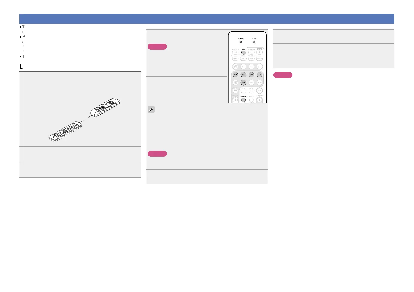 •When the memory of the remote control unit is full, the LEARN and