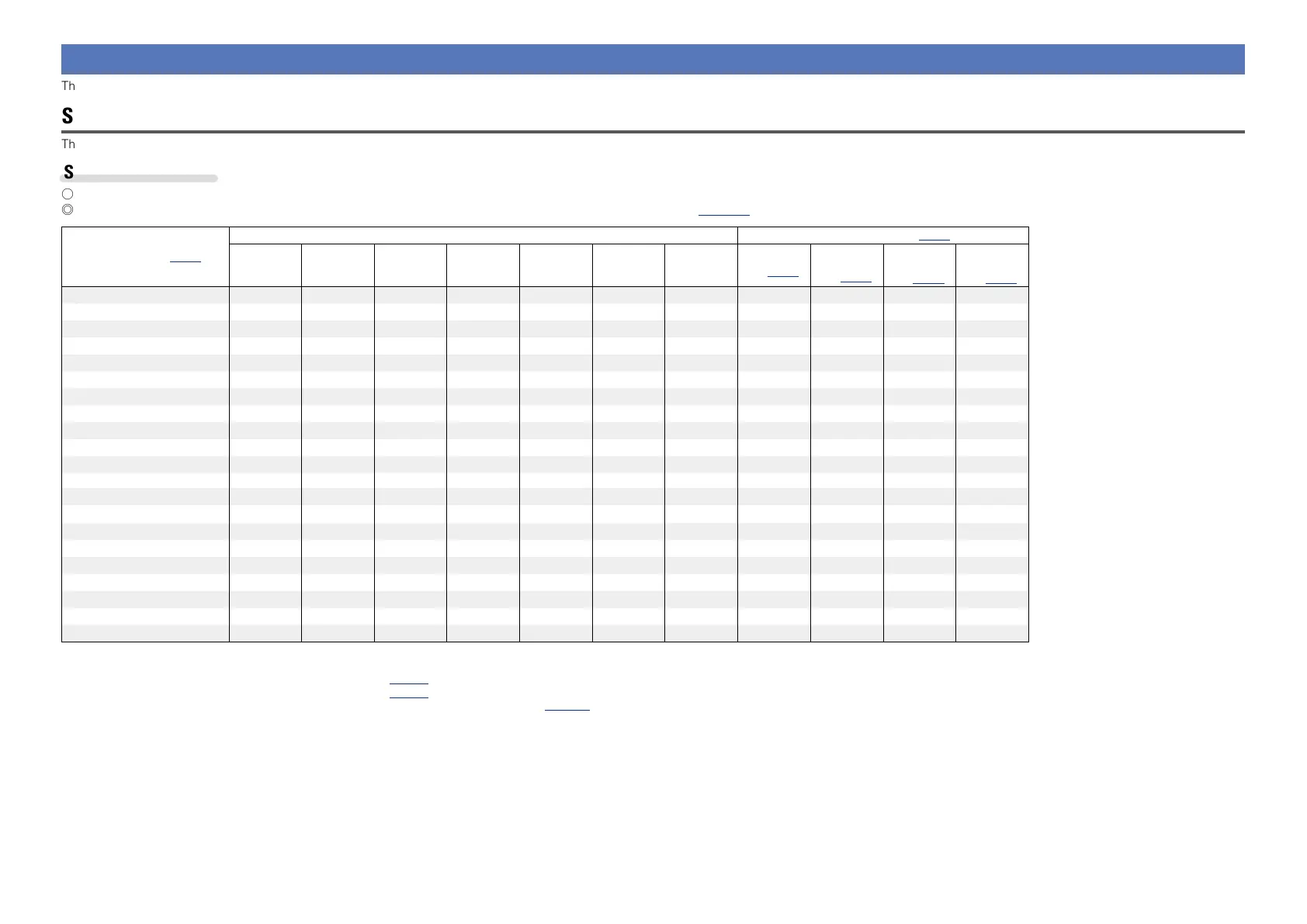 This table shows the speakers that can be used in each surround mode and the surround parameters adjustable in each surround mode.