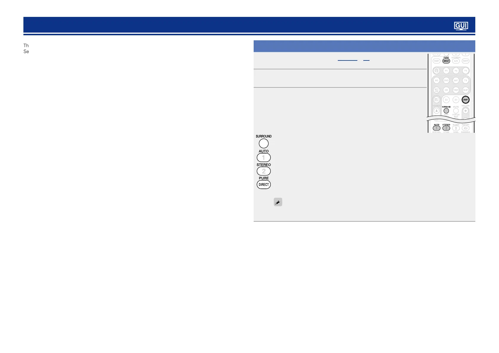 •Each time SURROUND, AUTO, STEREO or PURE DIRECT is pressed, the listening
