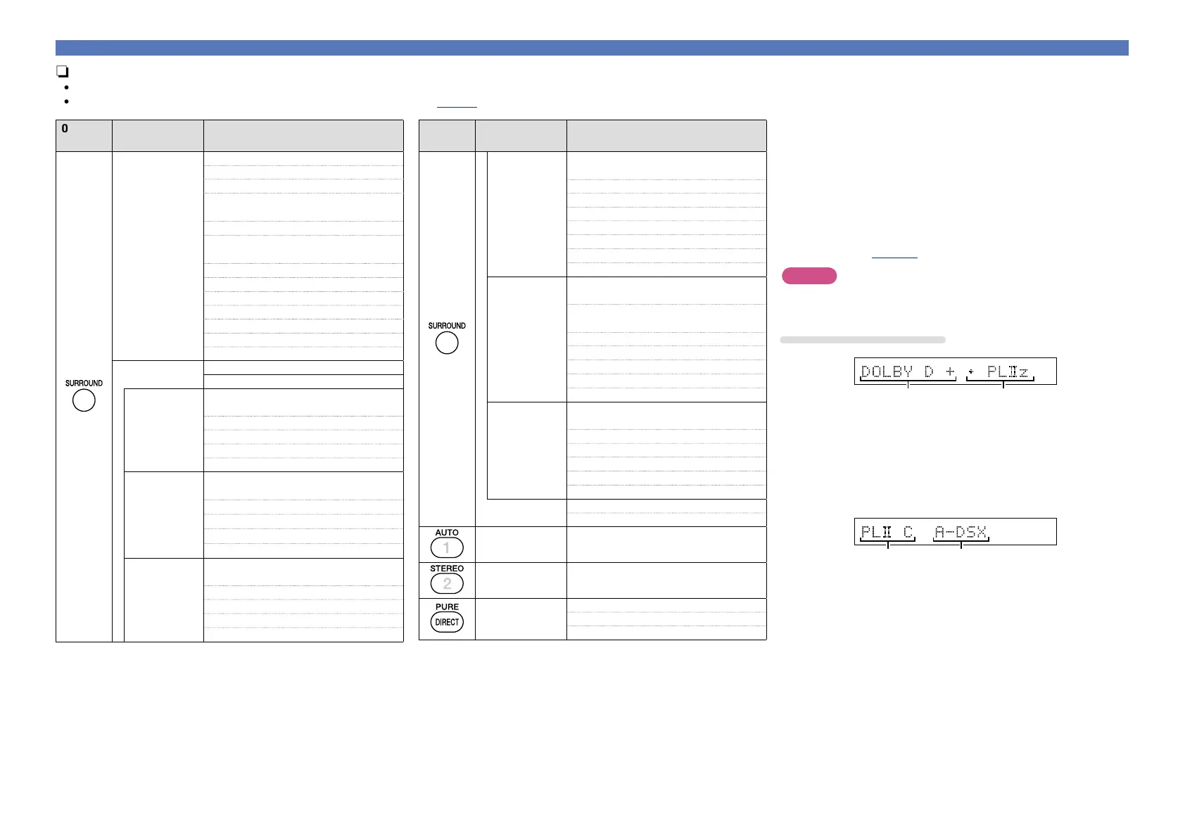 •Adjust the sound field effect with the menu “Surround Parameters” (vpage95) to enjoy your favorite sound mode.