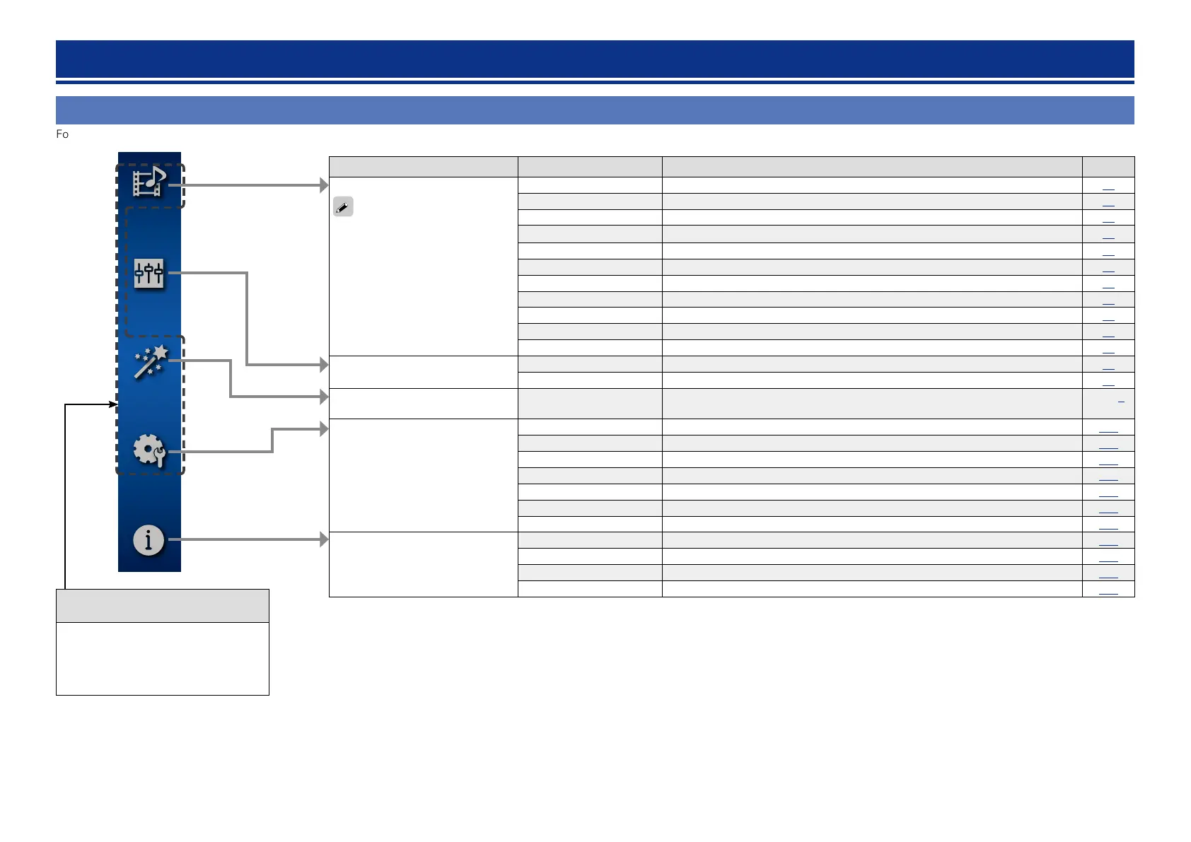 Zone Setup Makes settings for audio playback in a multi-zone (ZONE2/ZONE3) system.