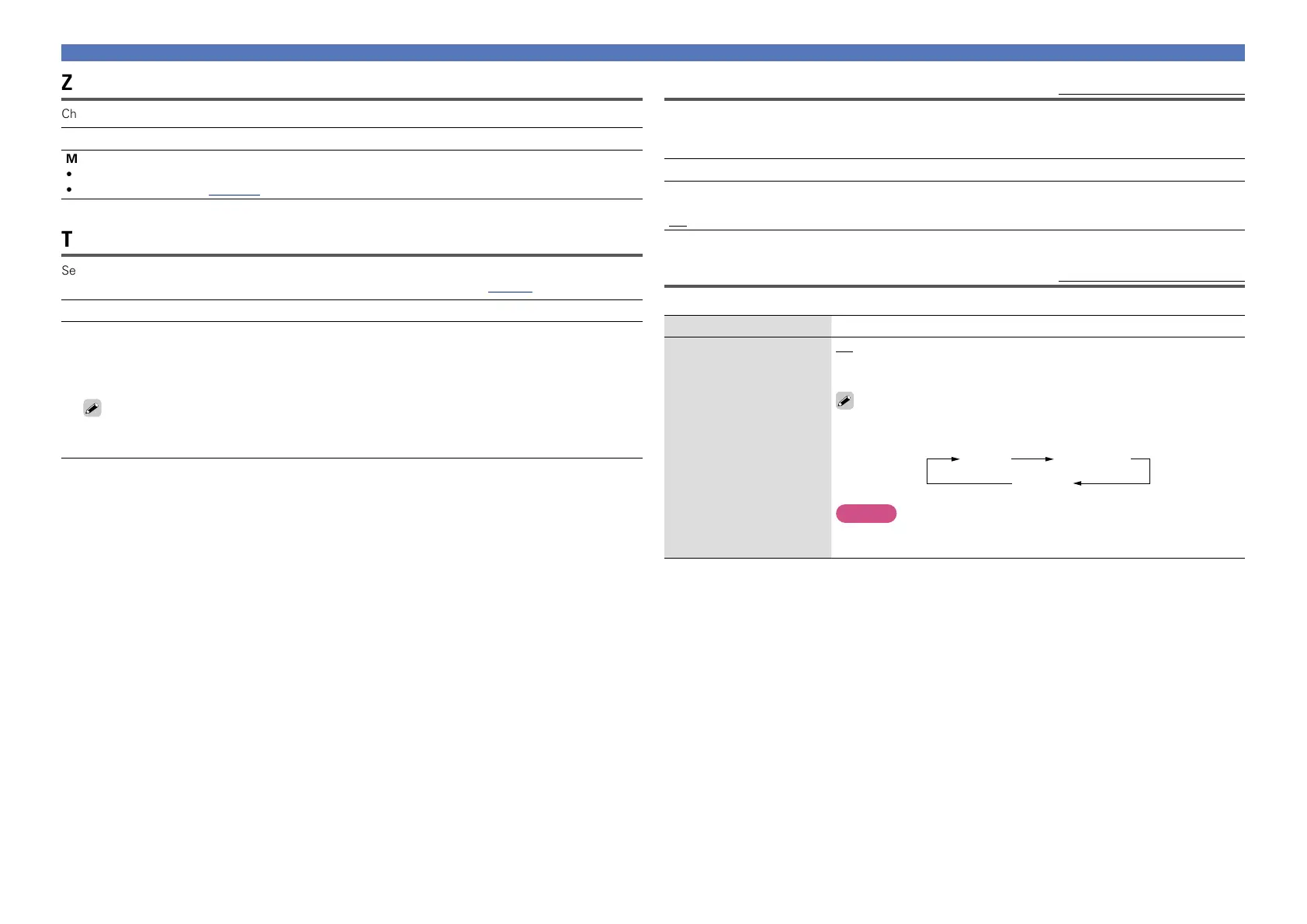 n When setting for zone (MAIN ZONE / ZONE2)