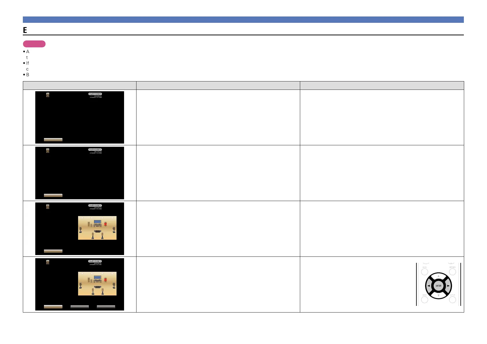 Setup” could not be completed due to speaker placement, the measurement environment, etc. If an error message is displayed, check the relevant items and perform