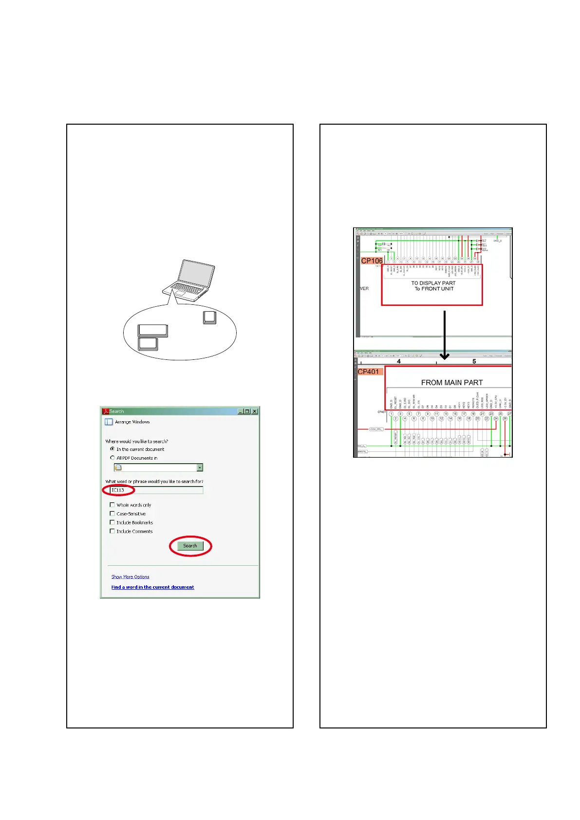 search for a Ref. No. in schematic diagrams, printed
