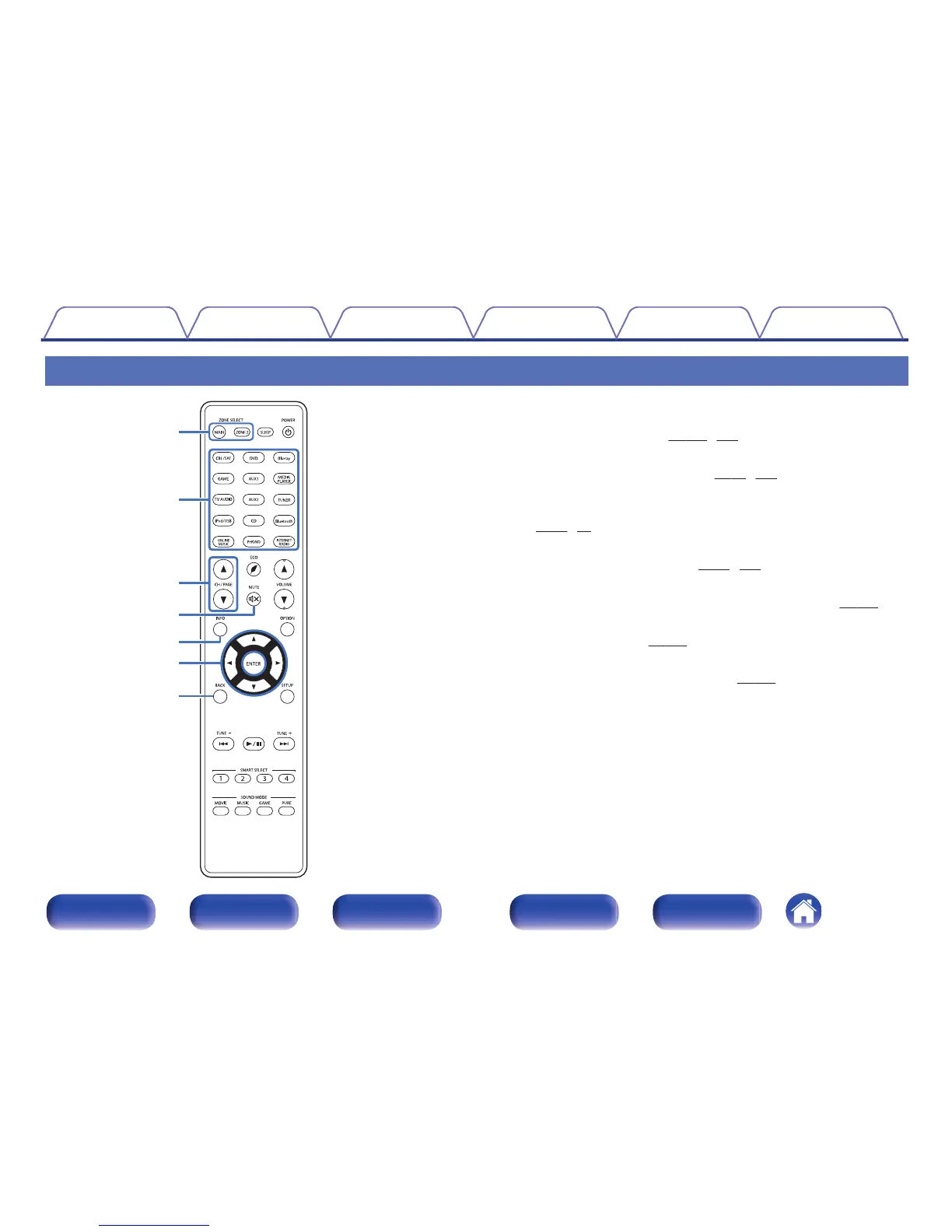 These switch the zone (MAIN ZONE, ZONE2) that is operated through