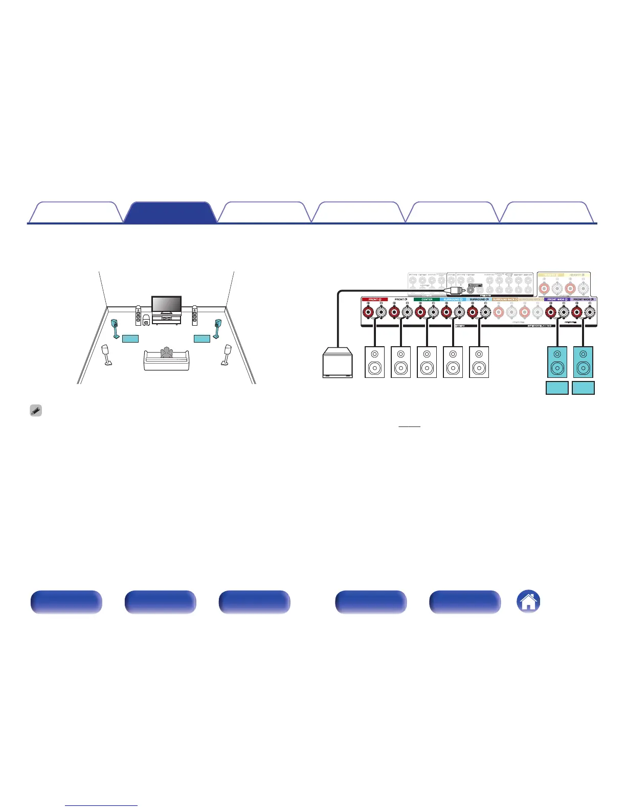Set “Floor” - “Layout” to “5ch & SB & FW” or “5ch & FW” in the menu when connecting in this configuration. (v p. 217)
