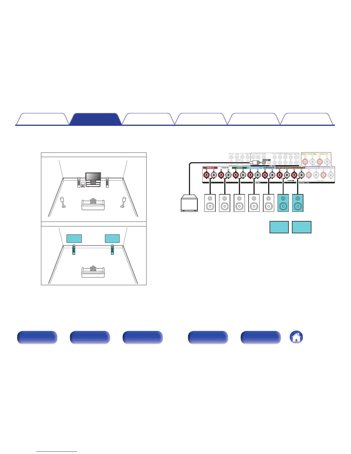 This type of configuration plays back 5.1-channels in MAIN ZONE and 2-channels in ZONE2.
