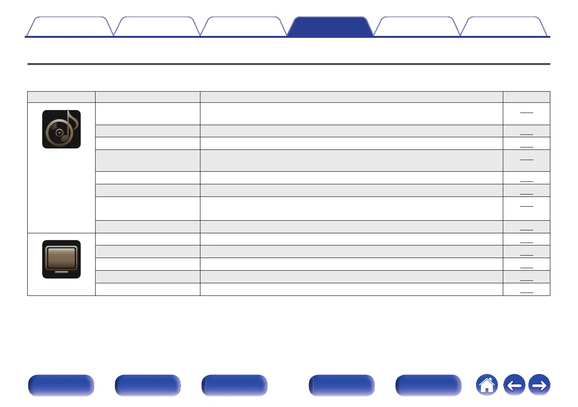 Surround Parameter Adjusts surround sound parameters. 174
