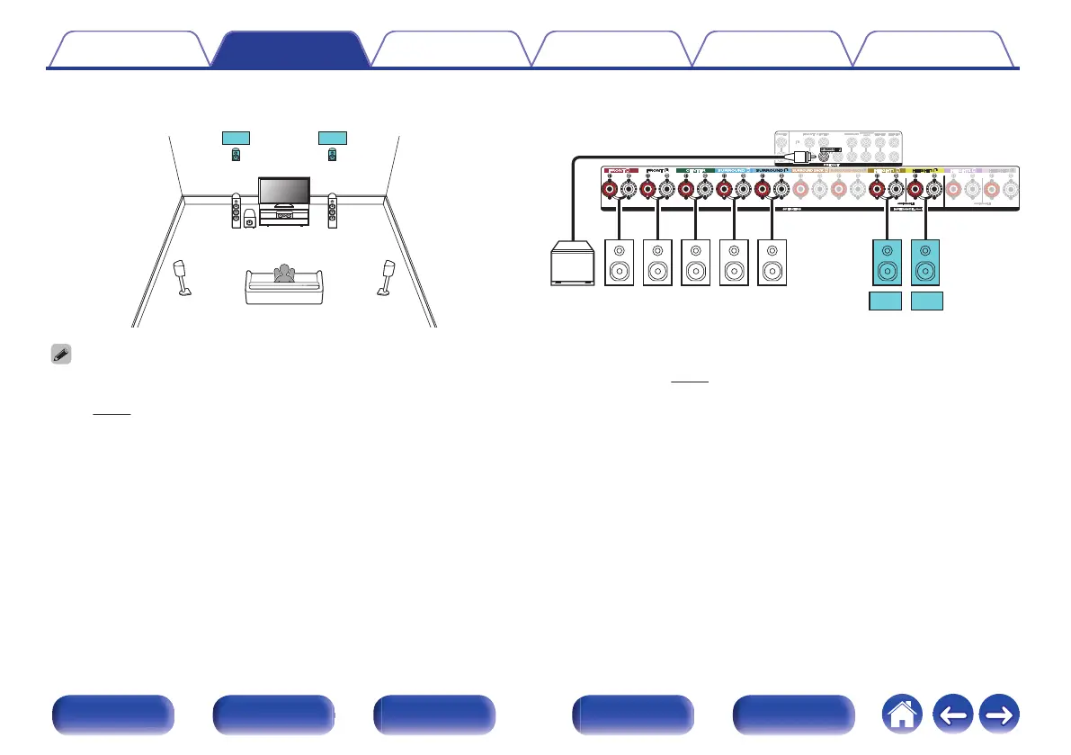 The rear height speakers can be connected instead of the front height speakers. In this case, set the height speakers to be connected under “Height” - “Layout” in the menu.