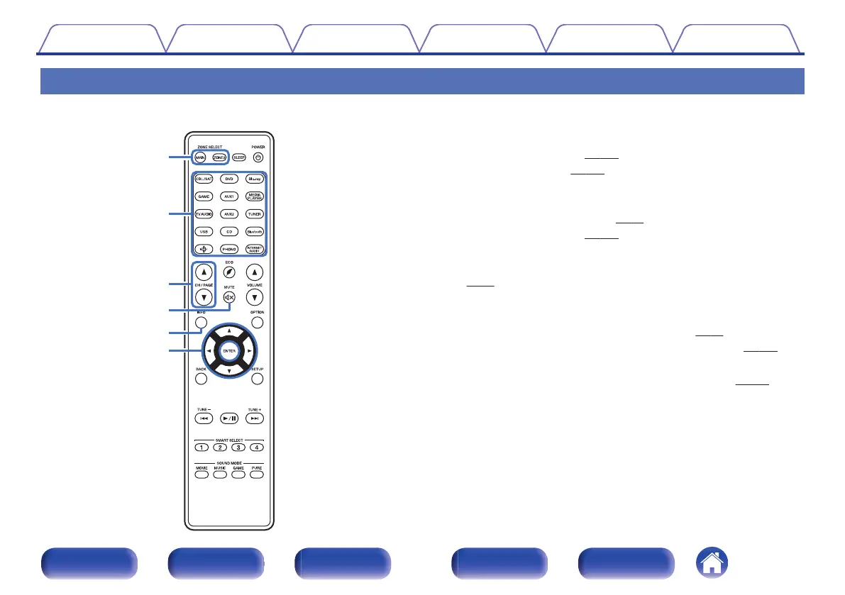 These switch the zone (MAIN ZONE, ZONE2) that is operated through