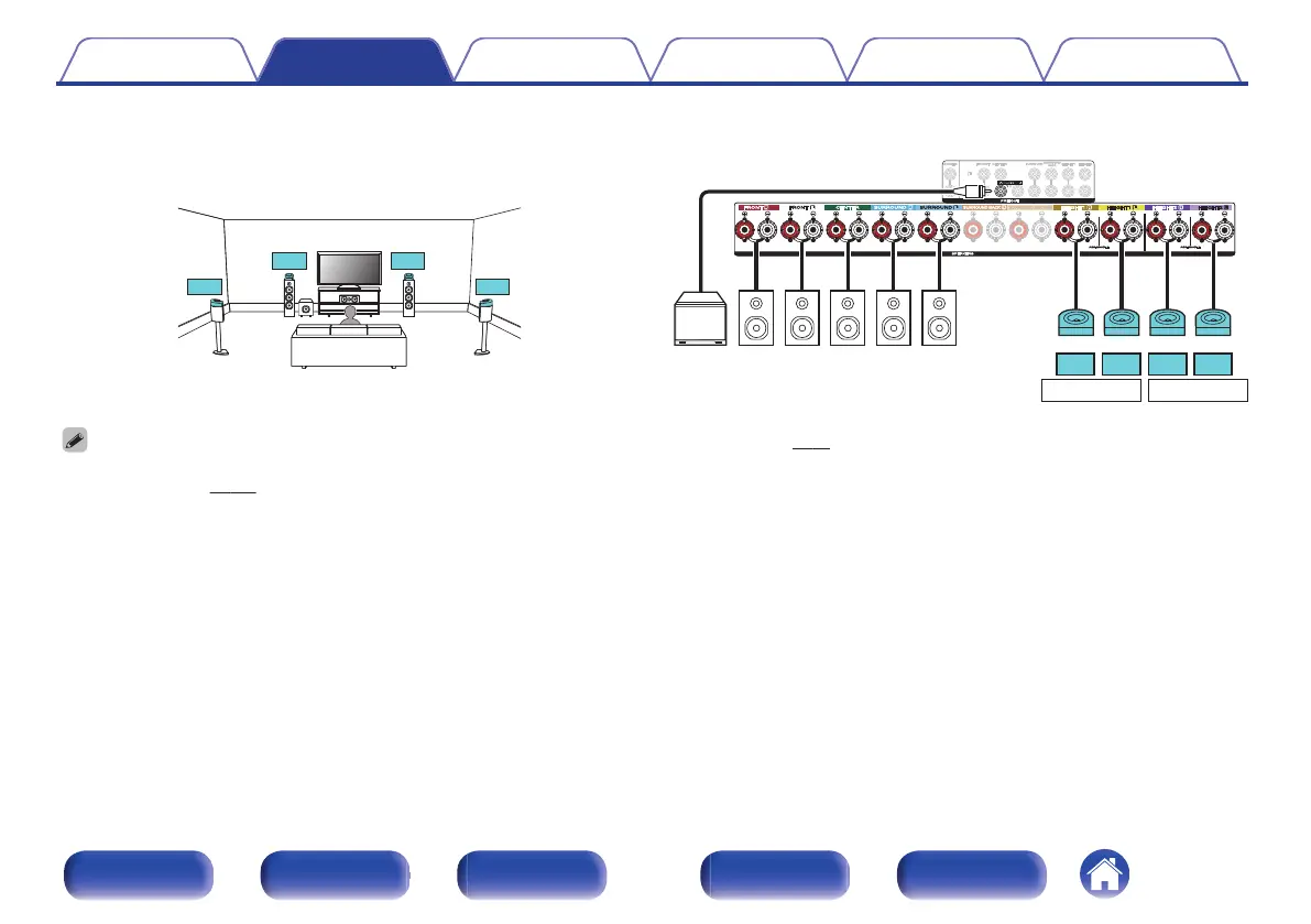 Example connection when using two sets of Dolby Atmos Enabled speakers