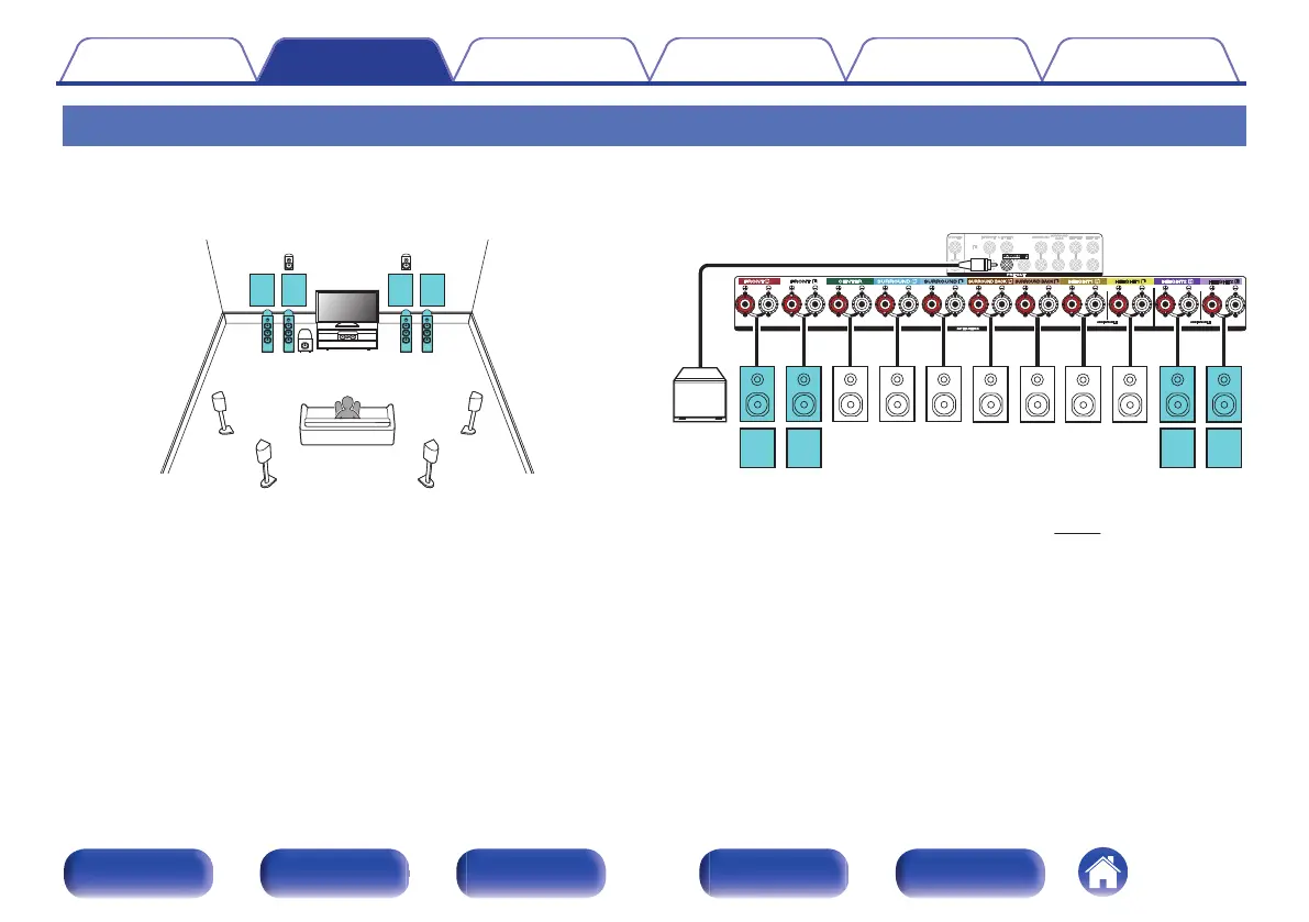You can connect speakers for up to 9-channels for MAIN ZONE. When you connect speakers for 8 or more channels, the output speakers automatically