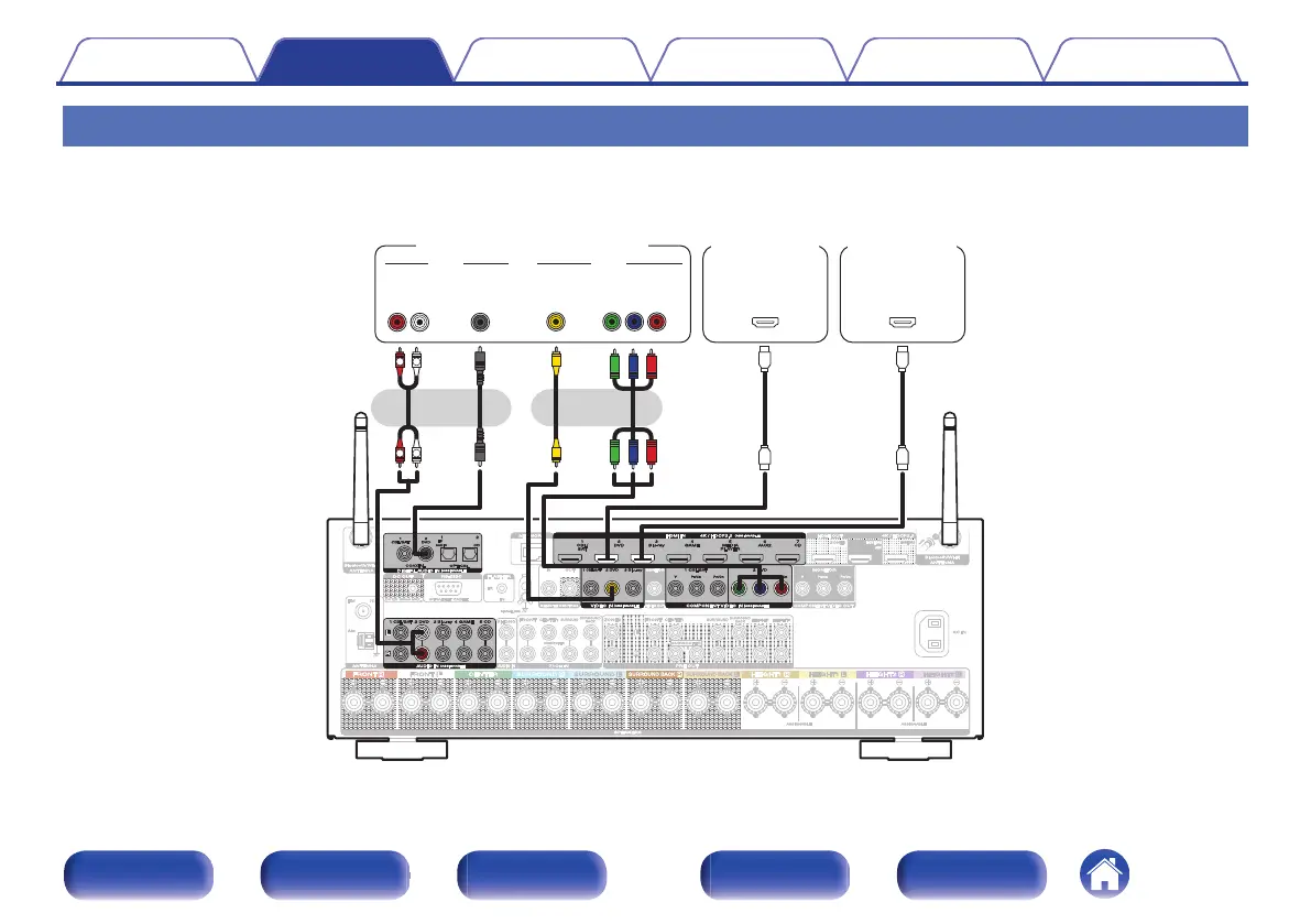 This explanation uses the connection with a DVD player or Blu-ray Disc player as an example.
