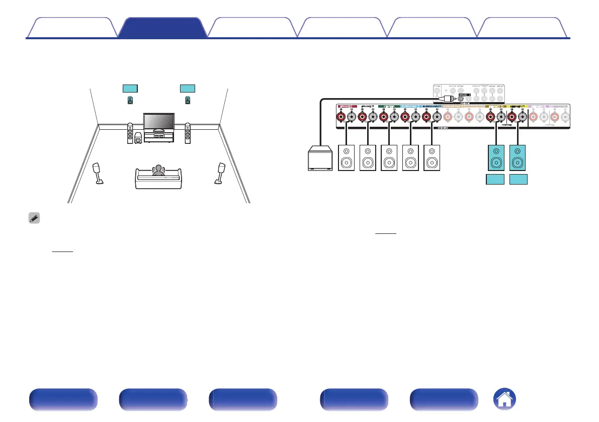 The rear height speakers can be connected instead of the front height speakers. In this case, set the height speakers to be connected under “Height” - “Layout” in the menu.
