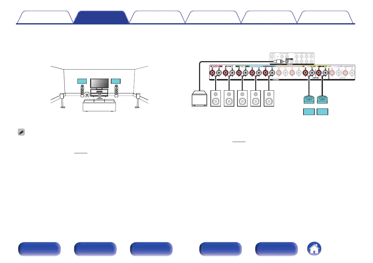 Set “Floor” - “Layout” to “5ch” and “Dolby Sp” to “2ch” in the menu when connecting in this configuration. (v p. 210)