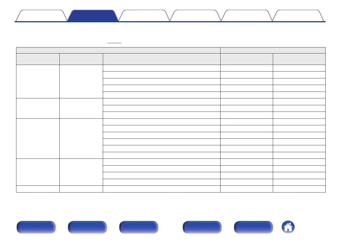 Channels output from the HEIGHT1 and HEIGHT2 speaker terminals can be changed to the following patterns according to the speaker systems being