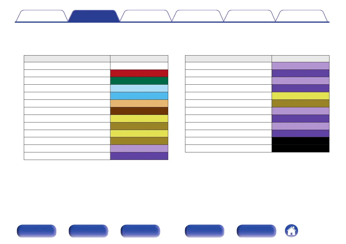 The channel display section for speaker terminals on the rear panel is color-coded for each channel to be identifiable.