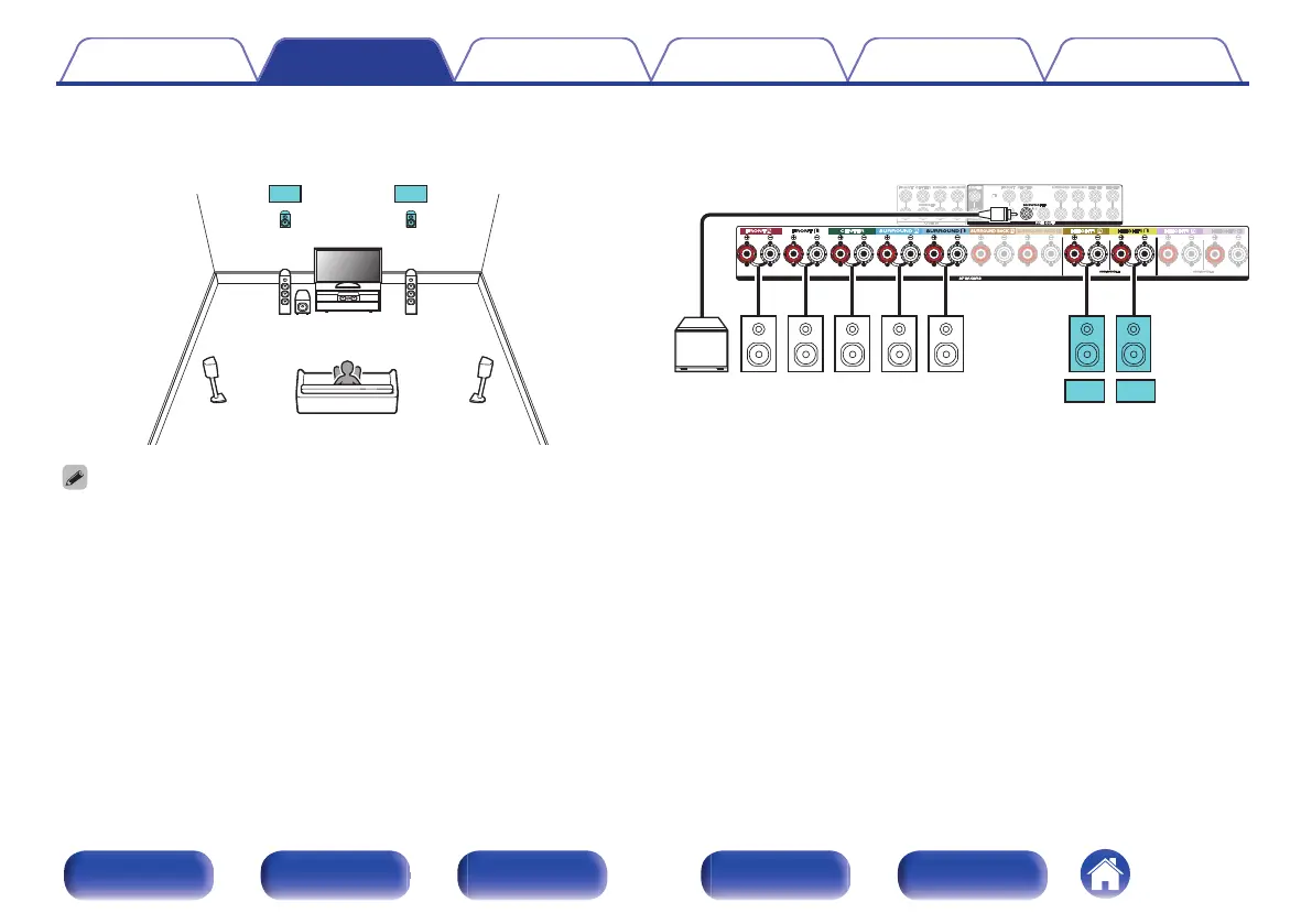Set “Floor” to “5ch” and “Height Sp” to “2ch” in the menu when connecting in this configuration. (v p. 217)