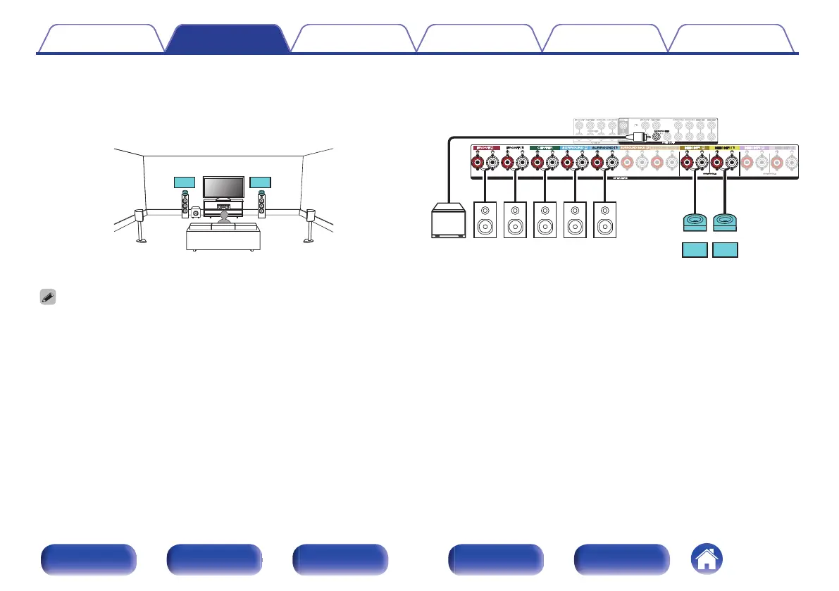 Set “Floor” to “5ch” and “Dolby Sp” to “2ch” in the menu when connecting in this configuration. (v p. 217)