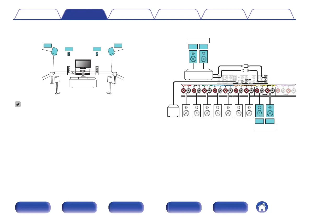 Example connection when using two sets of height speakers