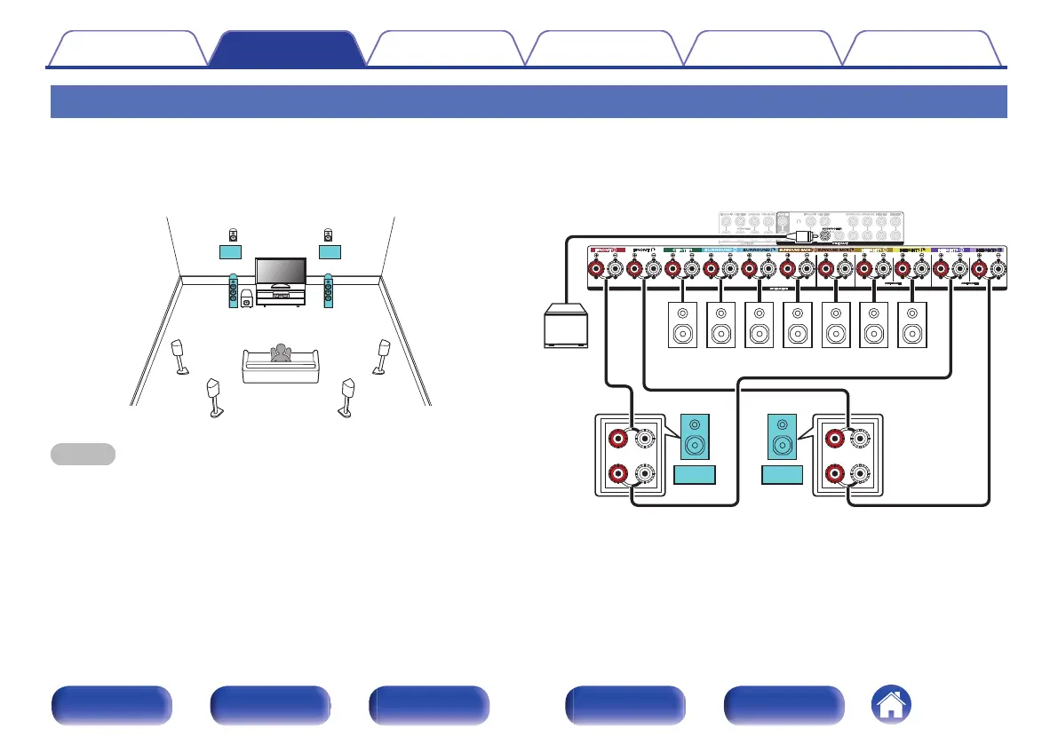You can connect speakers for up to 9-channels for MAIN ZONE. When you connect speakers for 8 or more channels, the output speakers automatically