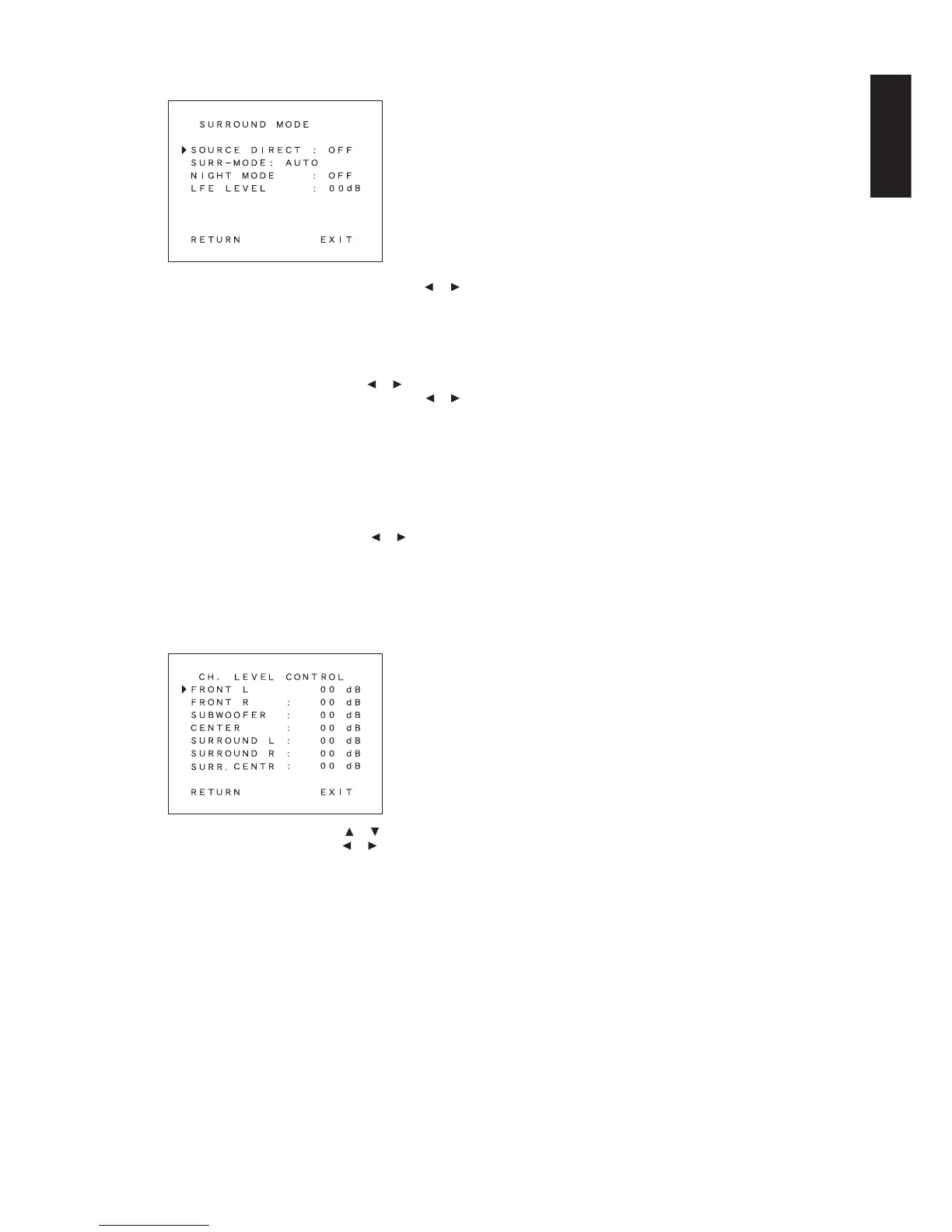 LFE LEVEL : Select the output level of the LFE signal included
