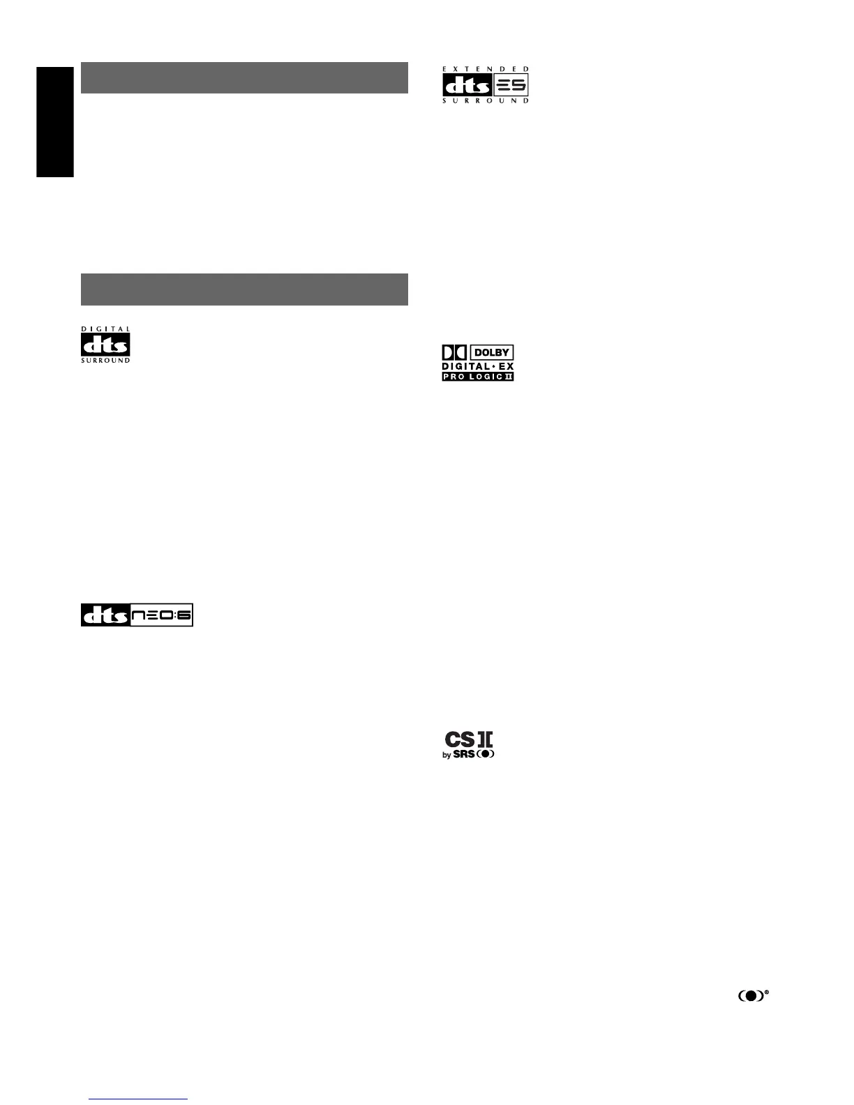 “DTS”, “DTS-ES Extended Surround” and “Neo:6” are trademarks of