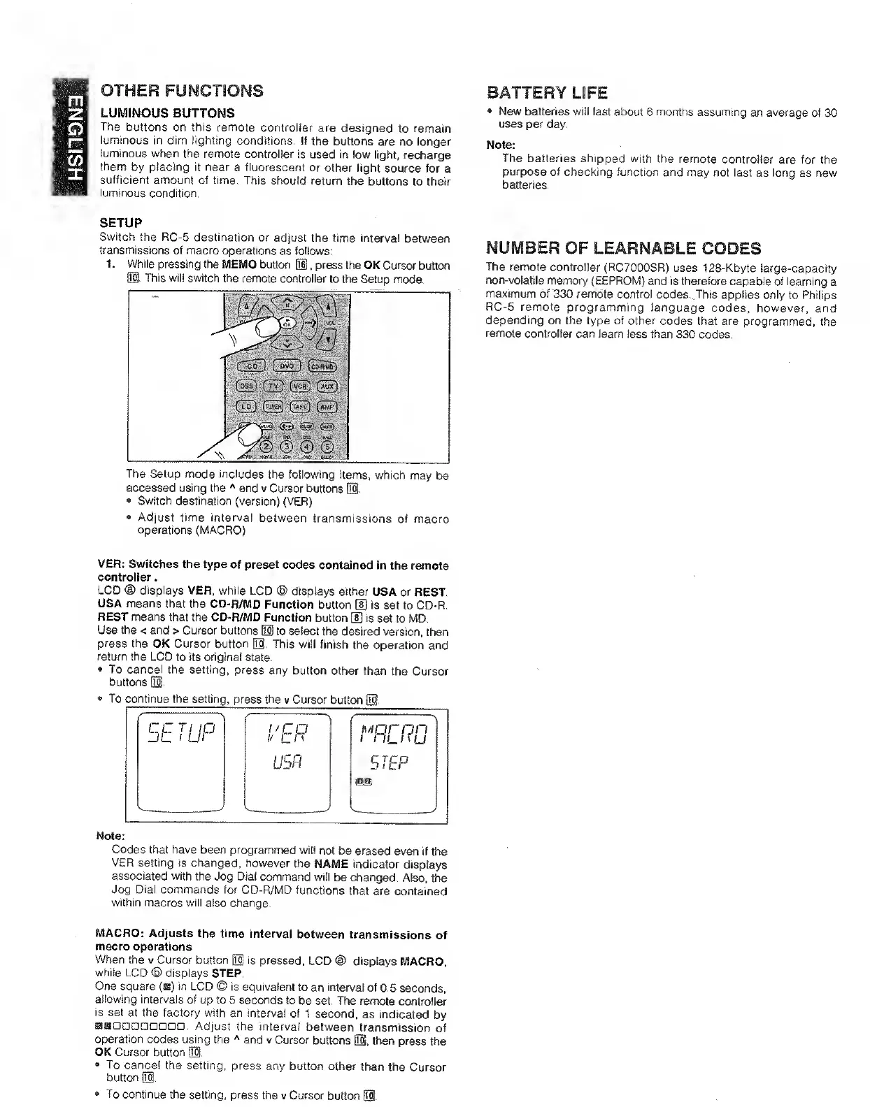 Marantz SR7000 - Other Functions: Remote Control Features; Luminous Buttons Feature; Setup Mode Operations; Switching Destination Version (VER)