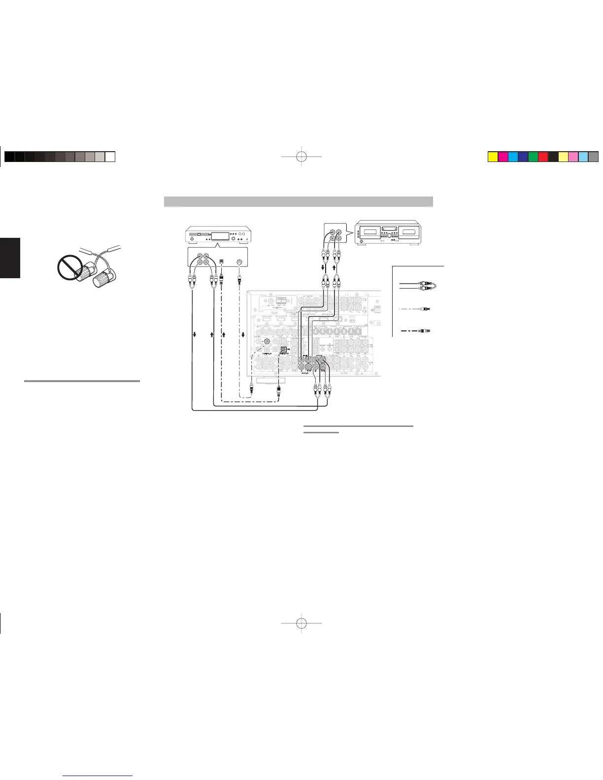 • N’attachez pas des câbles de raccordement audio/