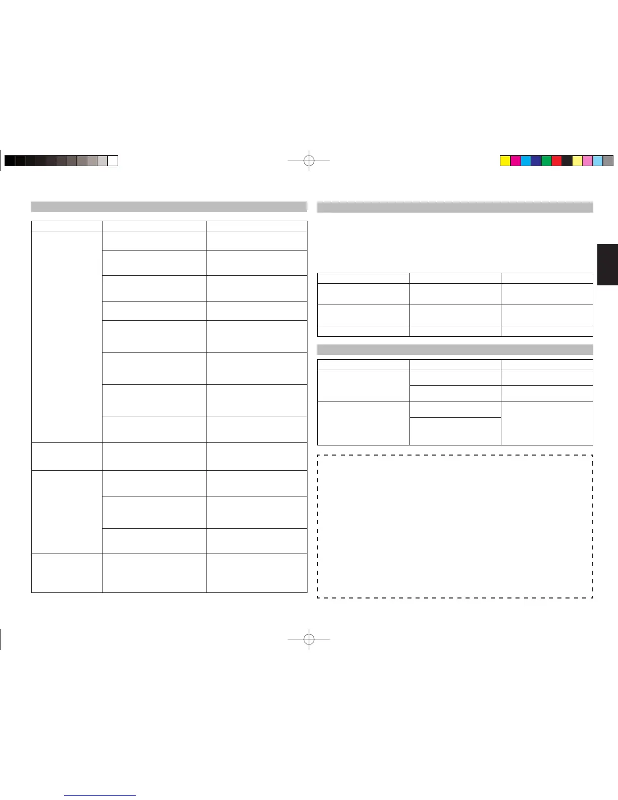 Si cet appareil ne fonctionne pas correctement, vérifi ez les éléments énumérés dans le tableau ci-dessous. Si
