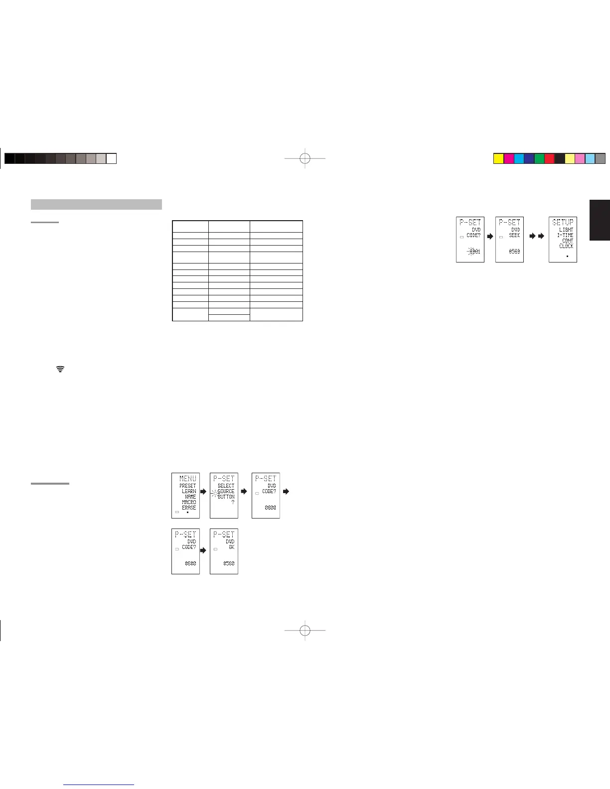 The preset codes are TV, VCR, LD, CABLE, DSS,