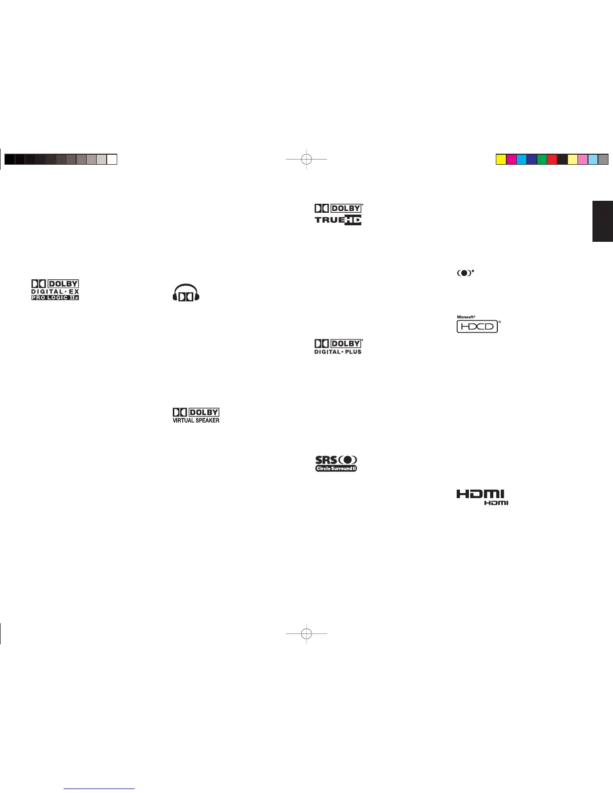 “Dolby”, “Pro Logic”, “Surround EX”, and the double-D
