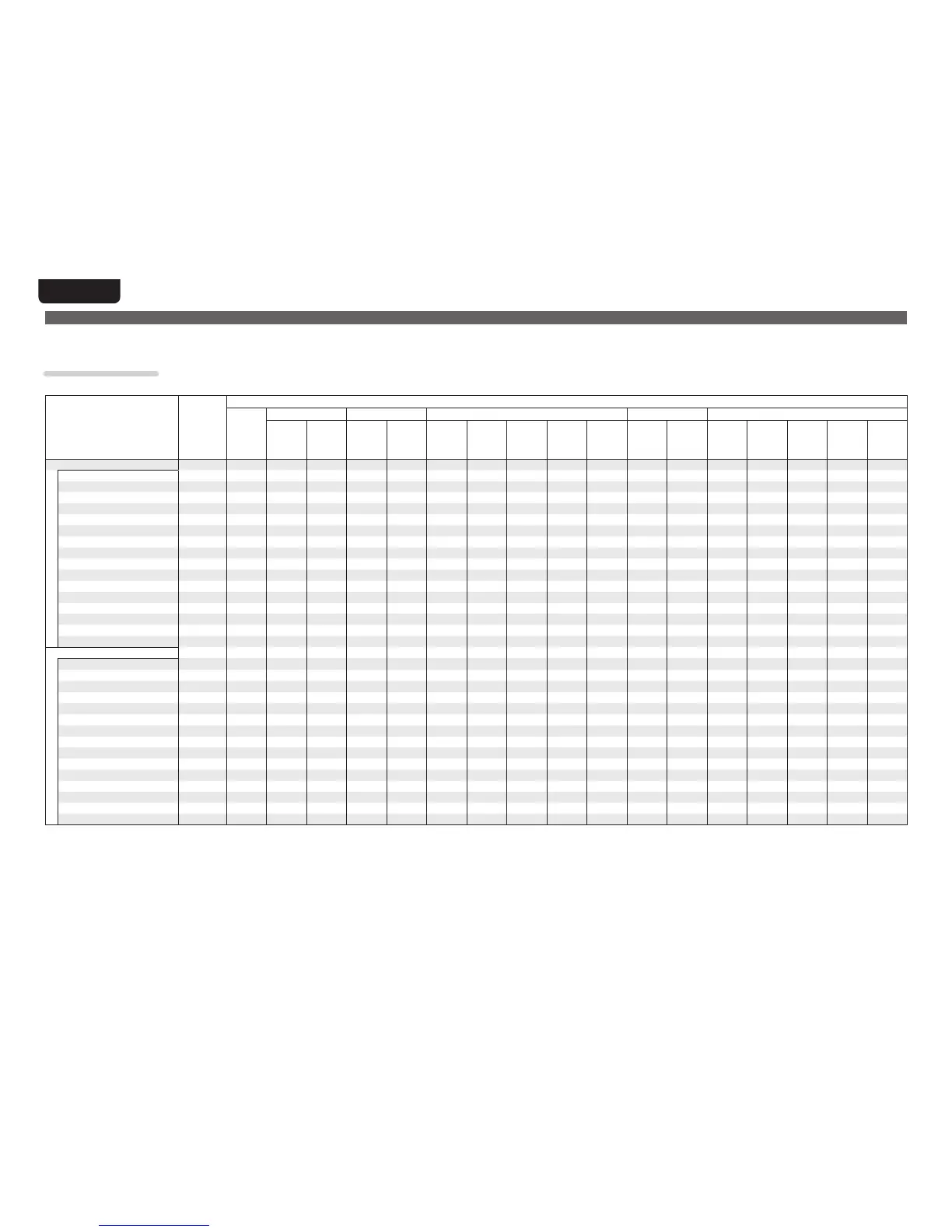 This table shows the input signal that can be played in each surround mode. Check the audio signal of the input source then select the surround mode.