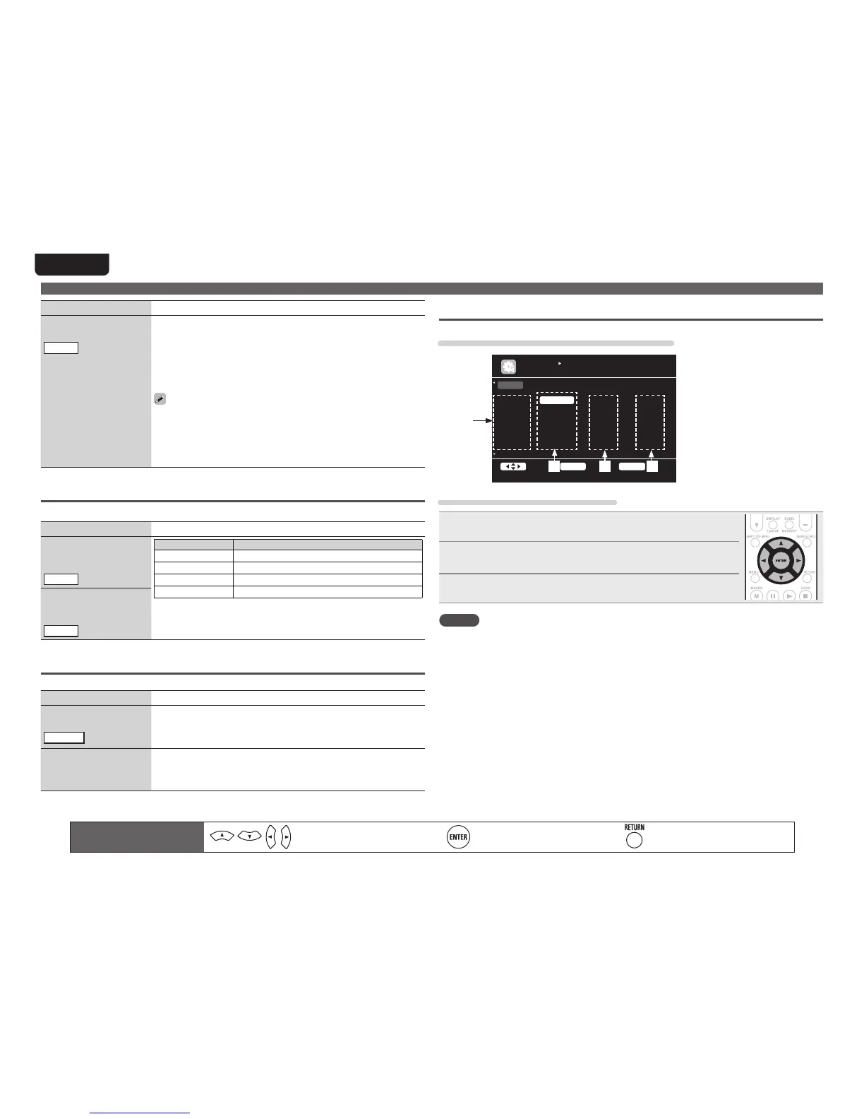 Setting items Setting details