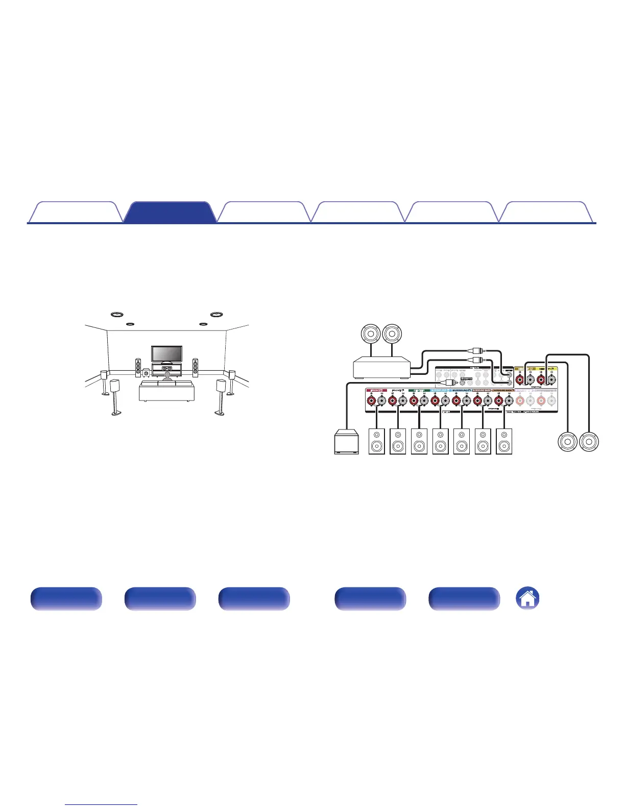 This system configuration plays back 11.1-channels by using an external power amplifier.