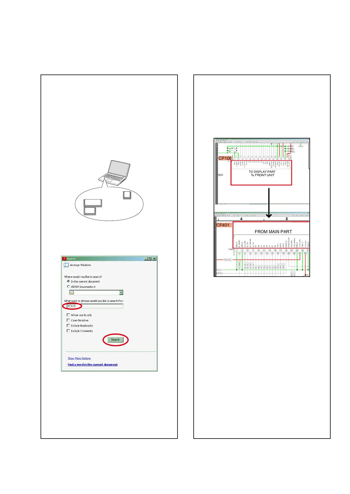 search for a Ref. No. in schematic diagrams, printed