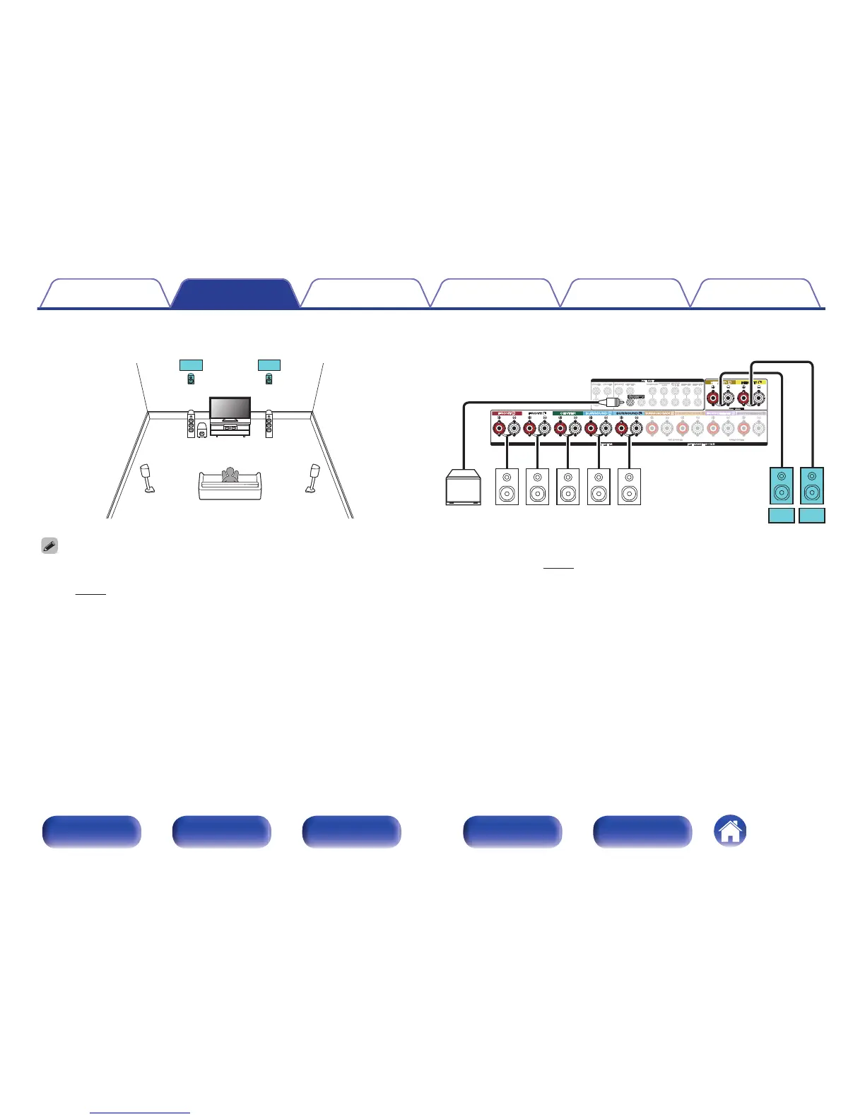The rear height speakers can be connected instead of the front height speakers. In this case, set the height speakers to be connected under “Height” - “Layout” in the menu.