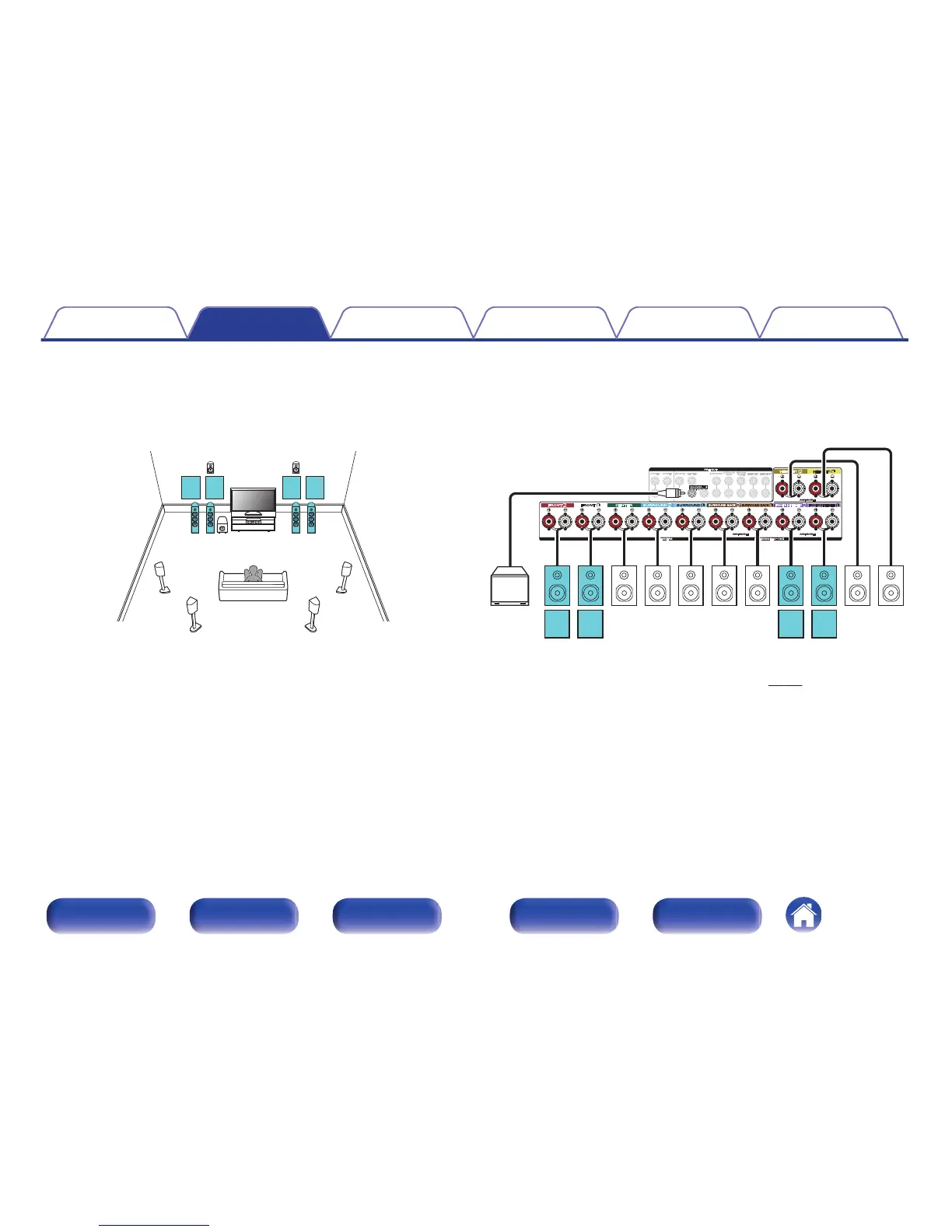 You can connect speakers for up to 9-channels for MAIN ZONE. When you connect speakers for 8 or more channels, the output speakers
