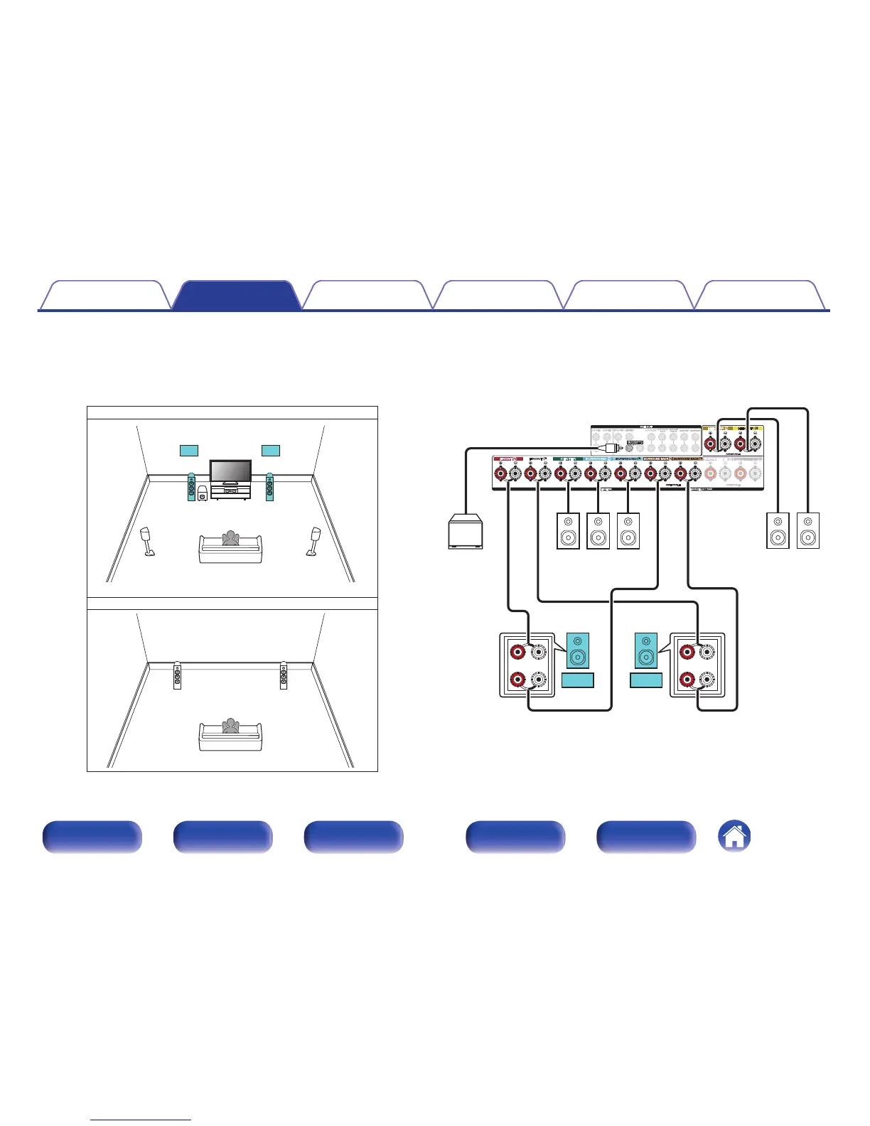 5.1-channel playback (bi-amp connection of front speakers: MAIN ZONE) + 2-channel playback