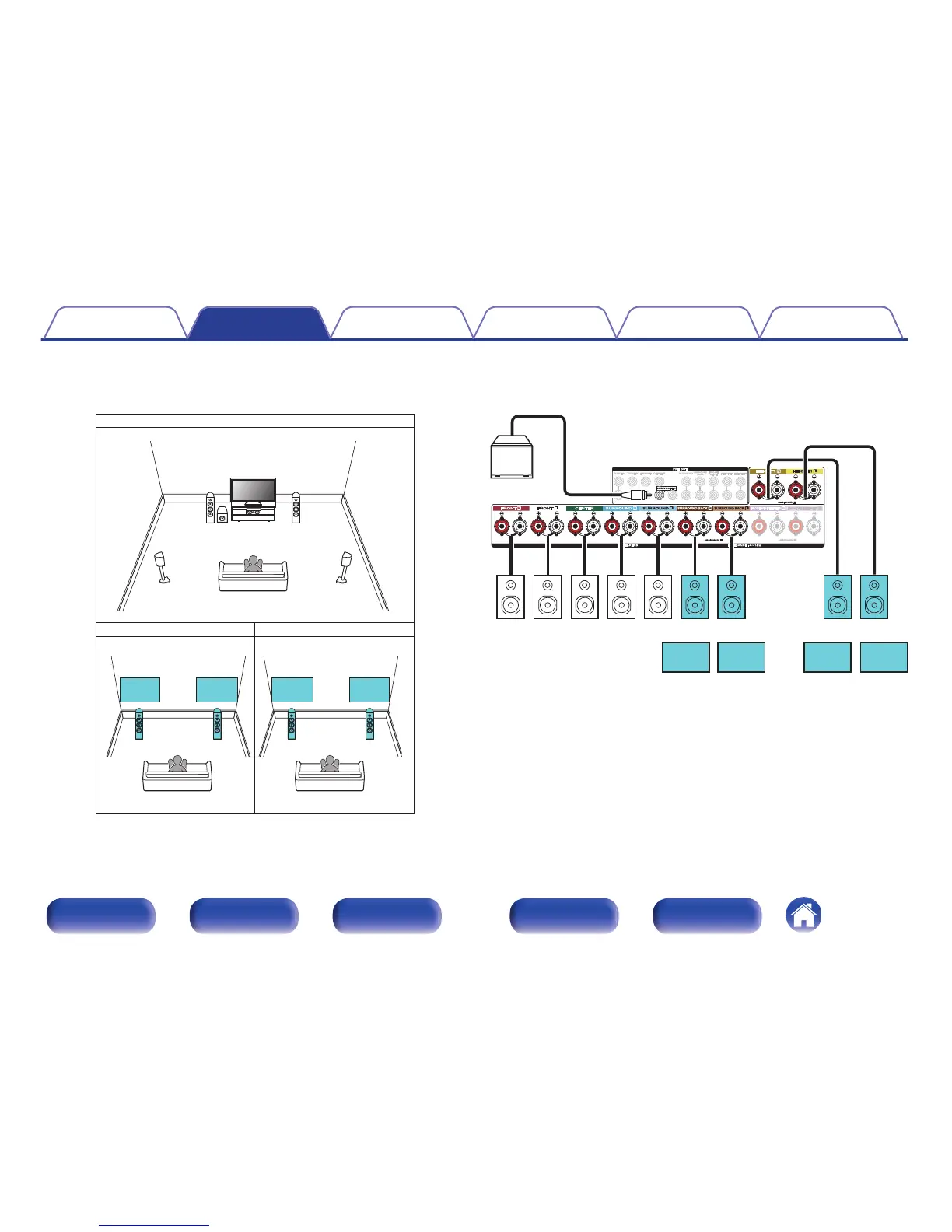 This type of configuration plays back 5.1-channels in MAIN ZONE and 2-channels in ZONE2 and ZONE3.
