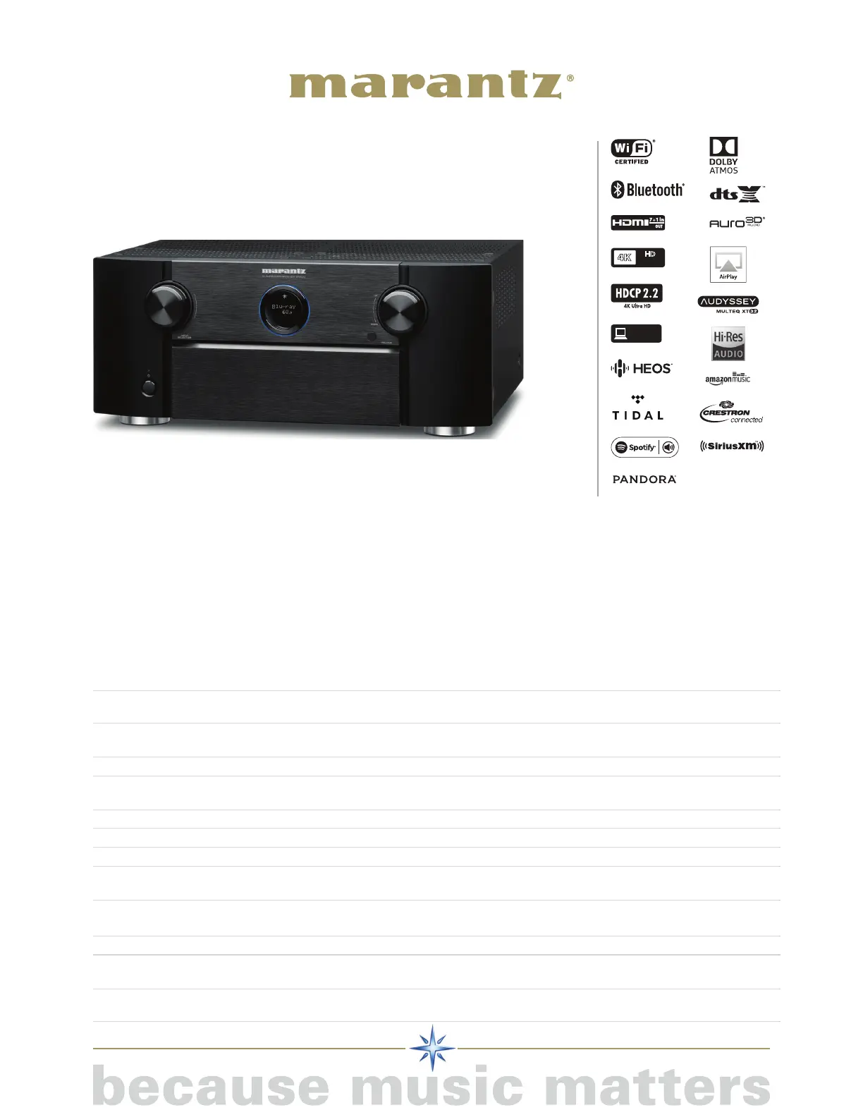 sound experience. And thanks to the receiver’s 9 high quality amplifier stages, each providing 125W of pure Marantz power and finesse, you can