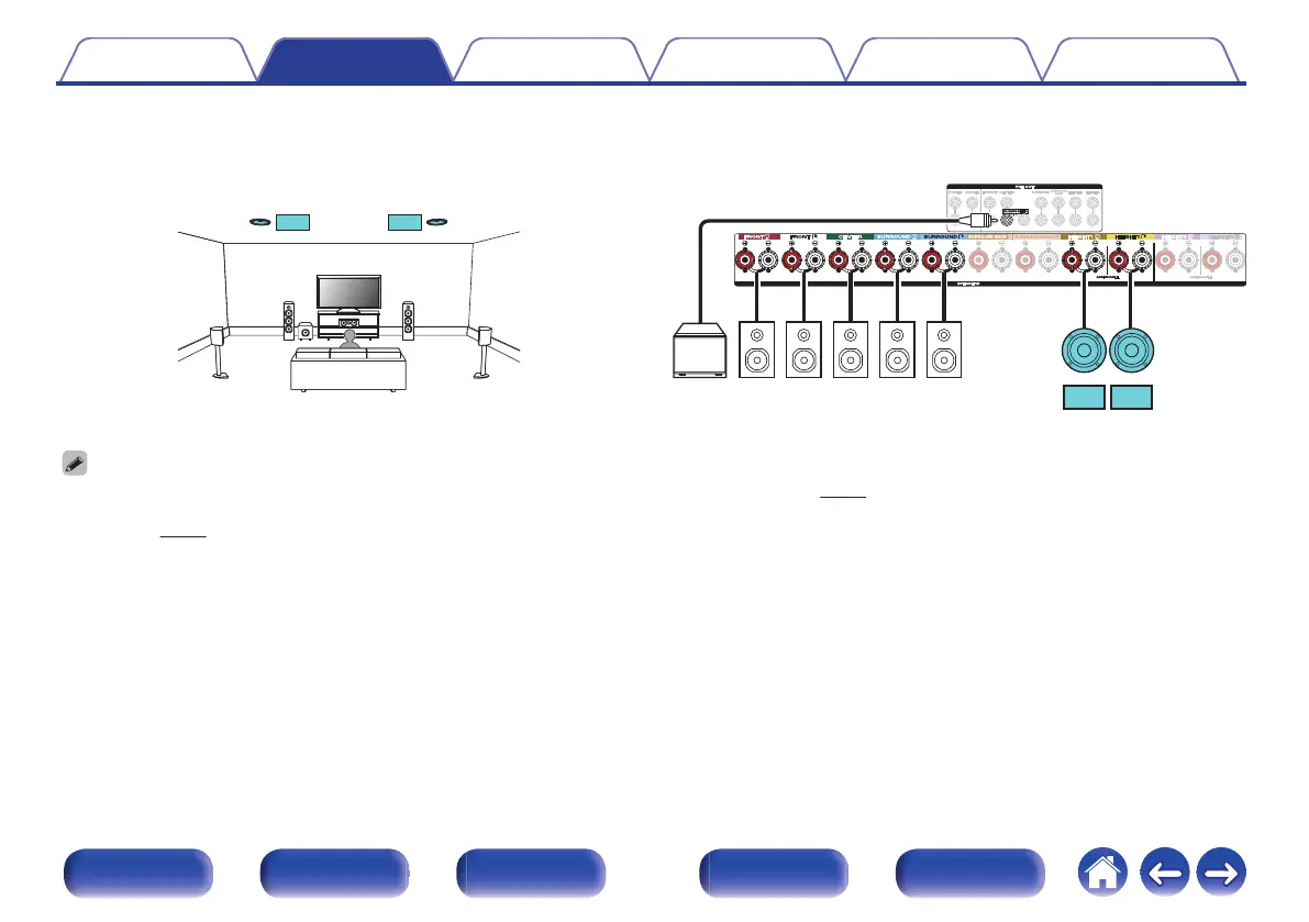 Set “Floor” - “Layout” to “5ch” and “Height Sp” to “2ch” in the menu when connecting in this configuration. (v p. 229)