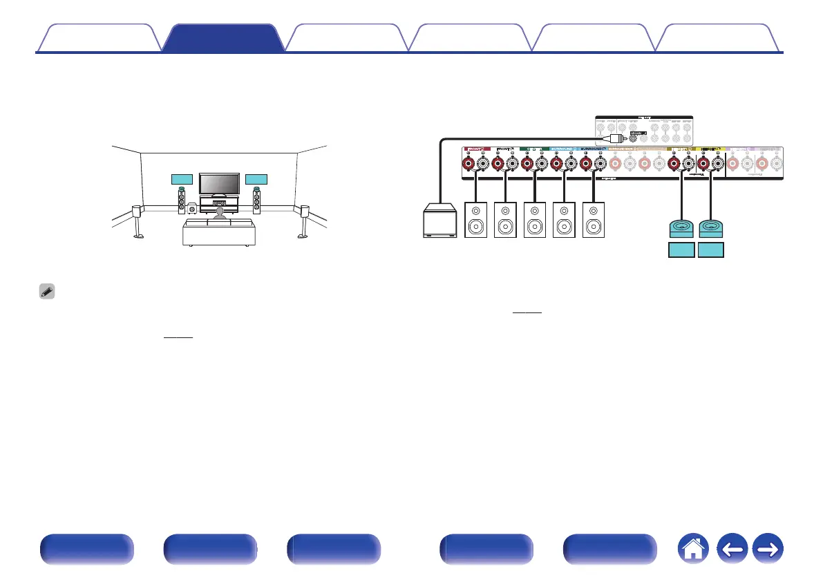 Set “Floor” - “Layout” to “5ch” and “Dolby Sp” to “2ch” in the menu when connecting in this configuration. (v p. 229)