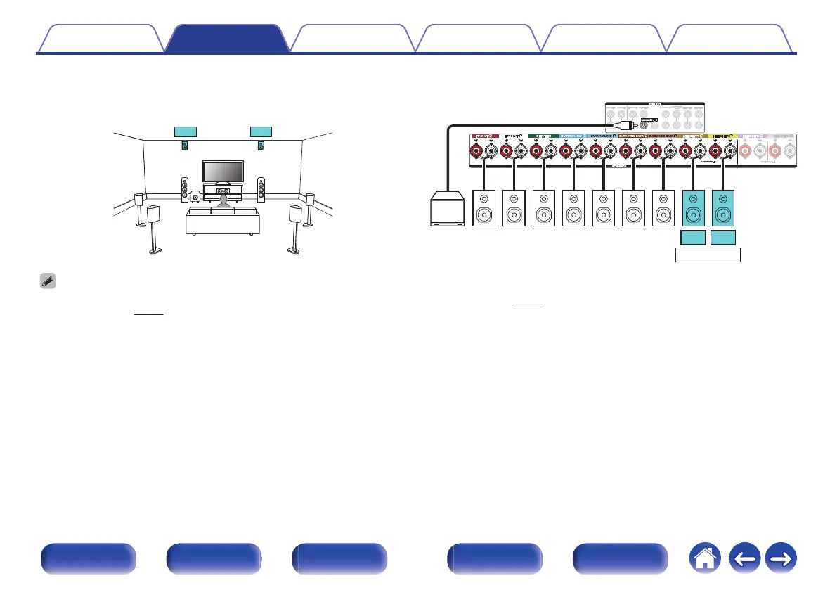 The rear height speakers can be connected instead of the front height speakers.