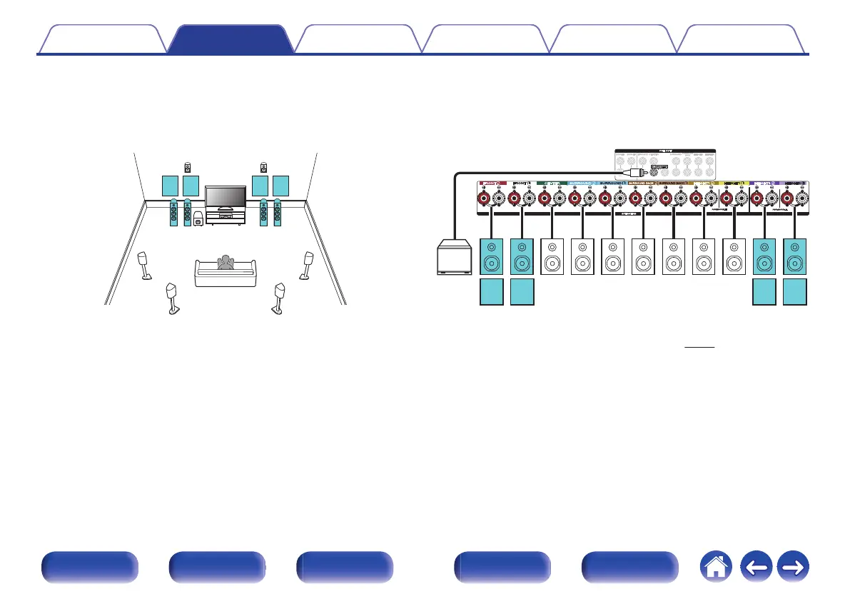 You can connect speakers for up to 9-channels for MAIN ZONE. When you connect speakers for 8 or more channels, the output speakers