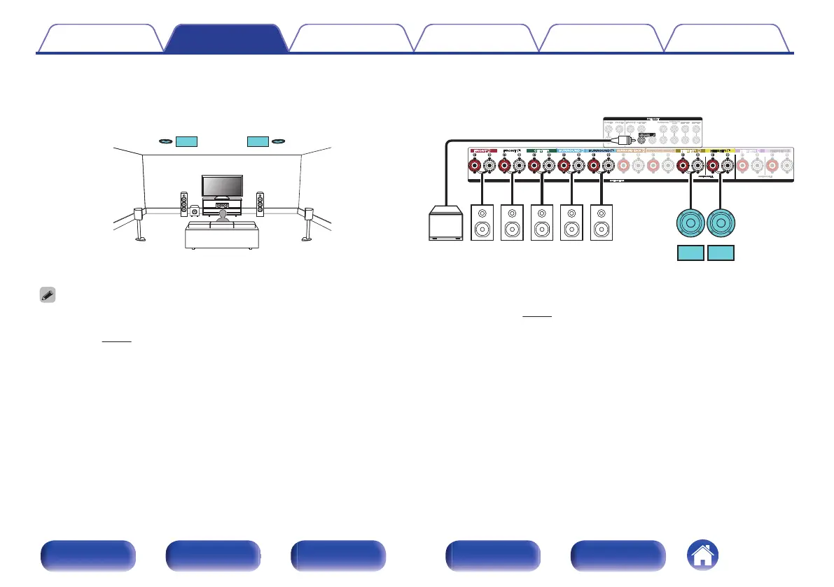 Set “Floor” - “Layout” to “5ch” and “Height Sp” to “2ch” in the menu when connecting in this configuration. (v p. 224)