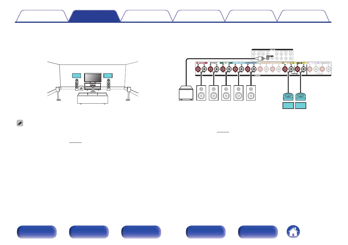 Set “Floor” - “Layout” to “5ch” and “Dolby Sp” to “2ch” in the menu when connecting in this configuration. (v p. 224)