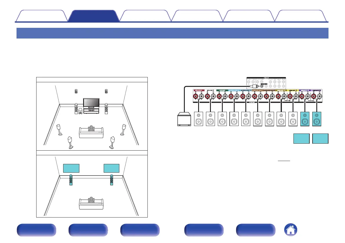 You can connect speakers for up to 9-channels for MAIN ZONE. When you connect speakers for 8 or more channels, the output speakers