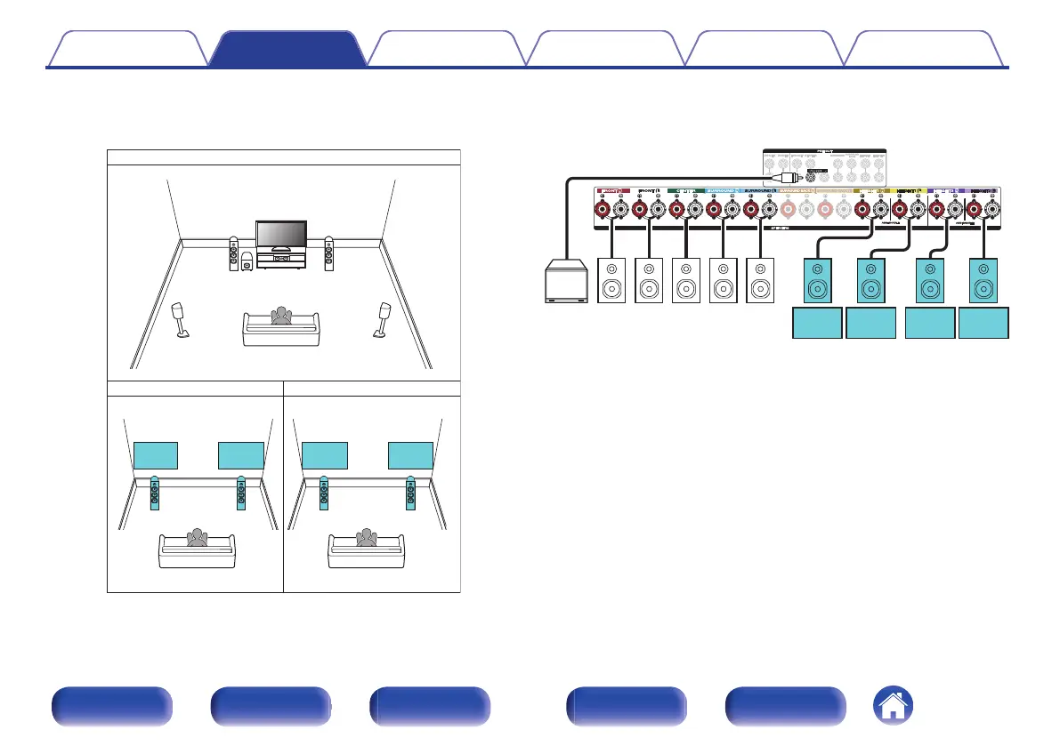 5.1-channel playback (MAIN ZONE) + 2-channel playback (ZONE2) + 2-channel playback (ZONE3)