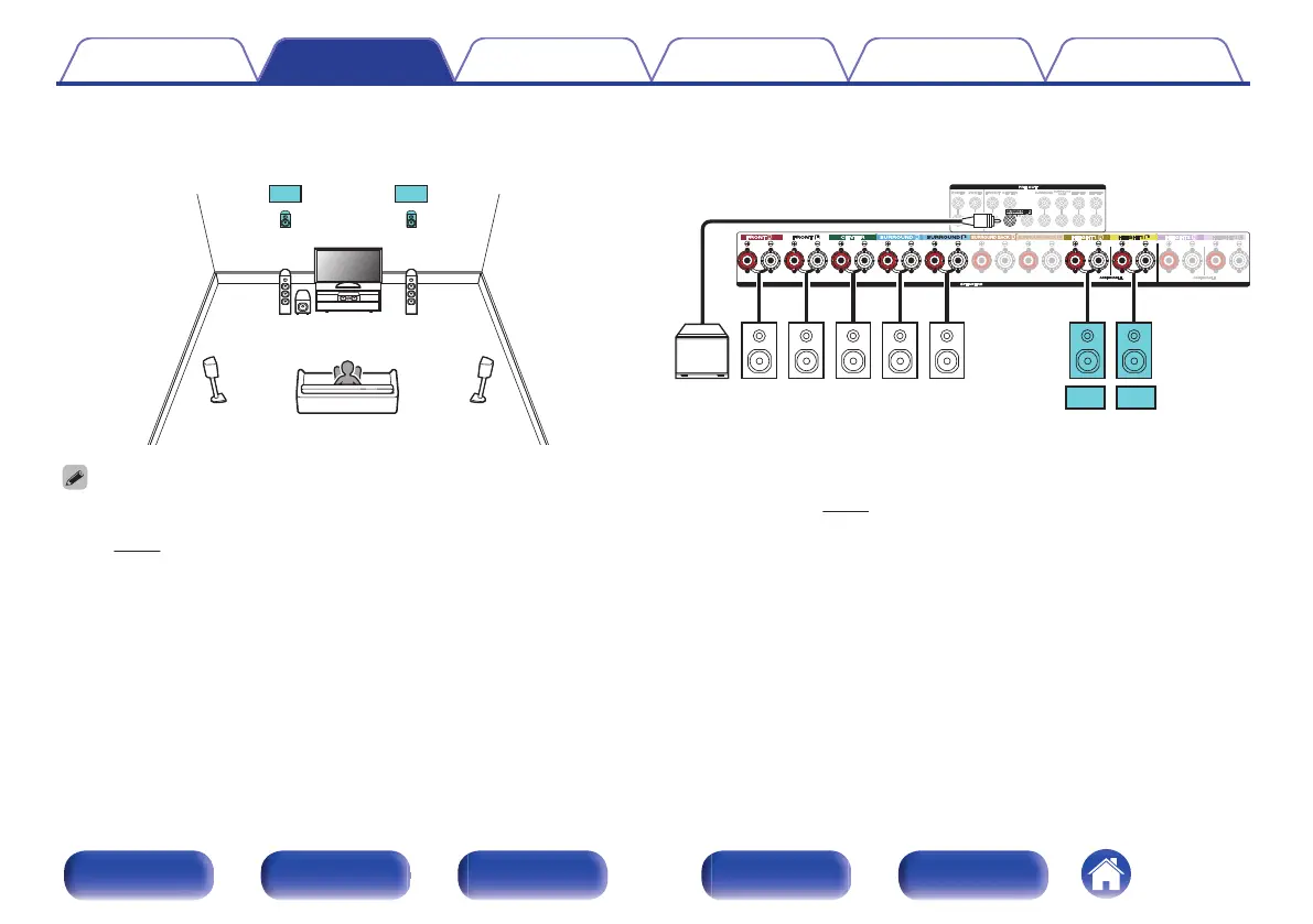 The rear height speakers can be connected instead of the front height speakers. In this case, set the height speakers to be connected under “Height” - “Layout” in the menu.